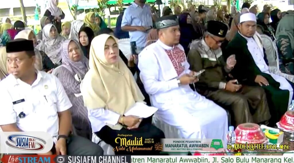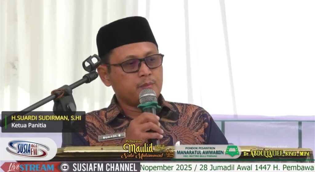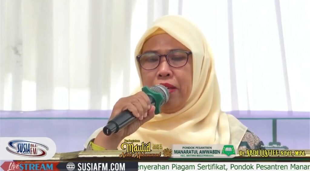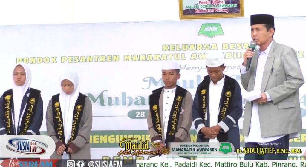 Pondok Pesantren Manaratul Awwabiin menggelar peringatan Maulid Nabi Muhammad SAW yang dirangkaikan dengan penamatan hafalan Qur’an 10 dan 20 juz serta khataman shorof, Rabu (19/11/2025). Kegiatan berlangsung di Jalan Salo Bulu Manarang, Kelurahan Manarang, Kecamatan Mattiro Bulu, Kabupaten Pinrang.